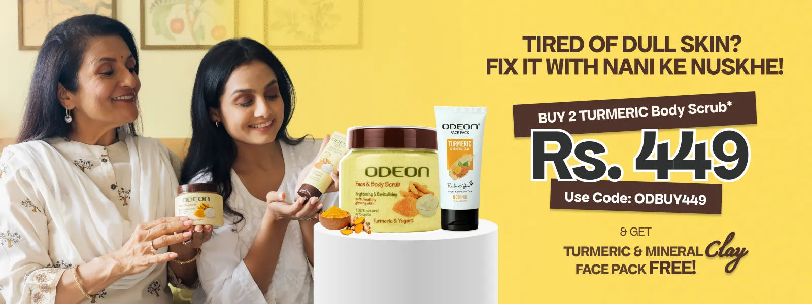 It’s a natural exfoliating scrub made with Haldi (Turmeric) and Dahi (Yogurt), inspired by traditional nani ke nuskhe. It helps remove tan, brighten skin, and restore a natural glow.