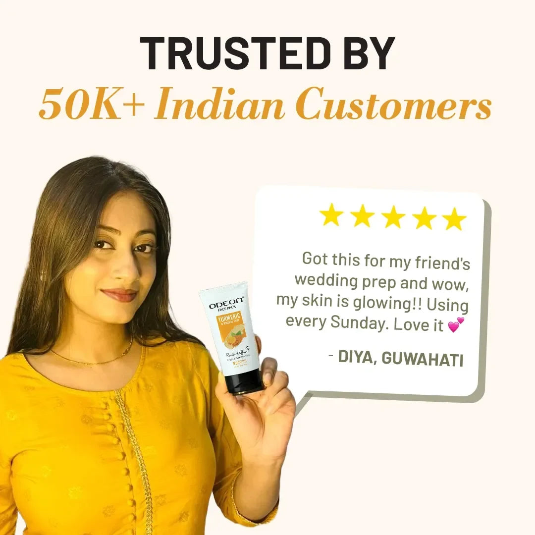Trusted by 100,000+ customers, ODEON brings you age-old Indian beauty rituals enhanced with modern science. Our natural face pack for blackheads and dark spots contains no harmful chemicals – just pure, effective ingredients for Real Care, Real Results, Real You.